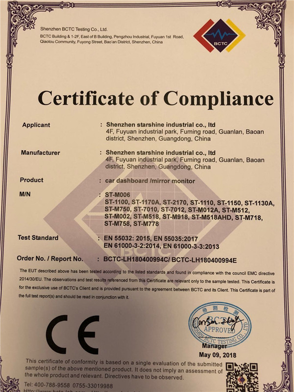 CE certificate of car monitors 2022-02-23 NextHongkong GlobalSources Consumer Electronics Fair Held on 11th,April to 14th,April 2023-05-16