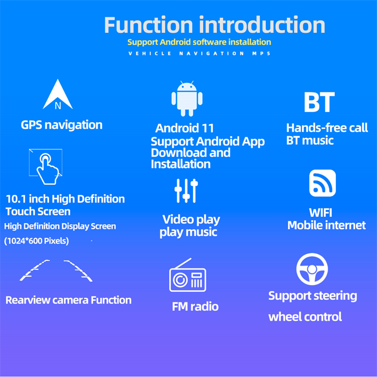 ♦ Built-in Bluetooth function, phone book and A2DP BT music.